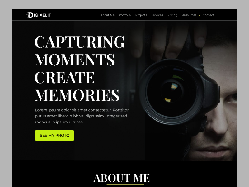 photography landing pagephotographer portfolio uicreative landing pagefigma landing pagephoto studio website