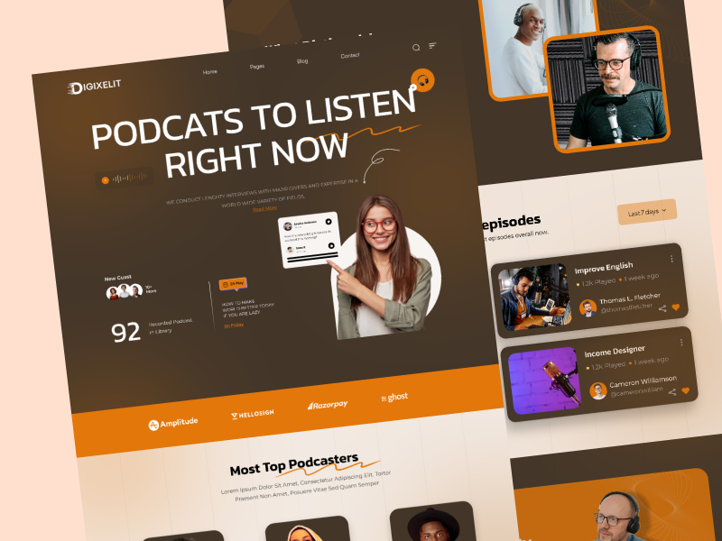 podcast landing pageaudio streaming uicontent creator websitefigma landing pagepodcast website