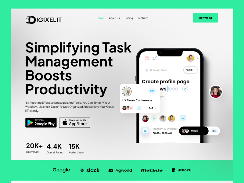 task management landing pageproject management uiproductivity landing pagefigma landing pageteam collaboration