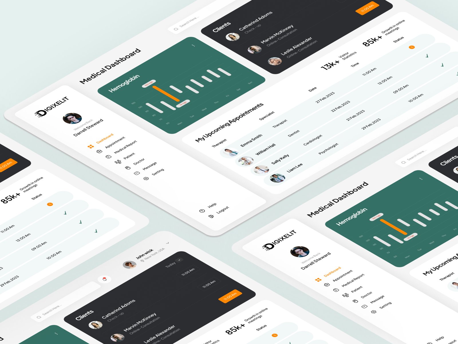 A modern and intuitive Medical Dashboard UI template designed for managing healthcare data, patient statistics, and medical analytics. With a clean layout and easy-to-read visual components, this dashboard is ideal for hospitals, clinics, healthcare systems, and medical management platforms. Available in Figma format, it allows designers and developers to quickly customize layouts and build efficient, data-driven medical dashboards.