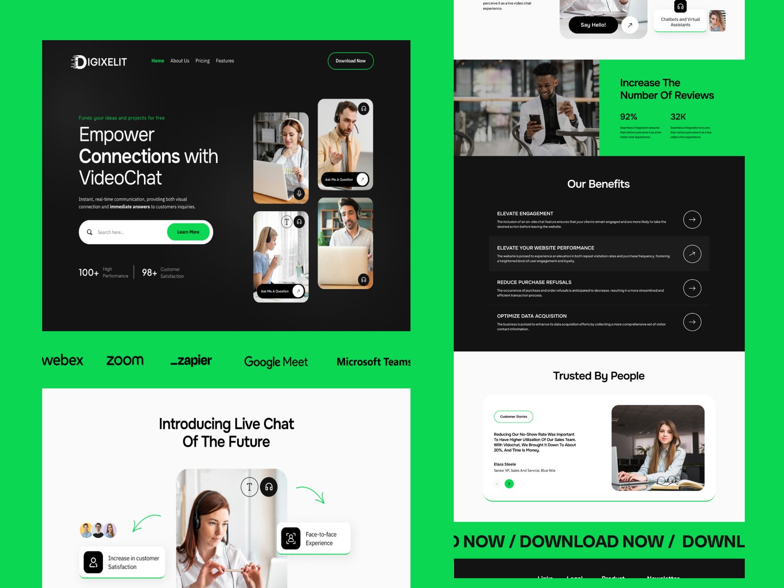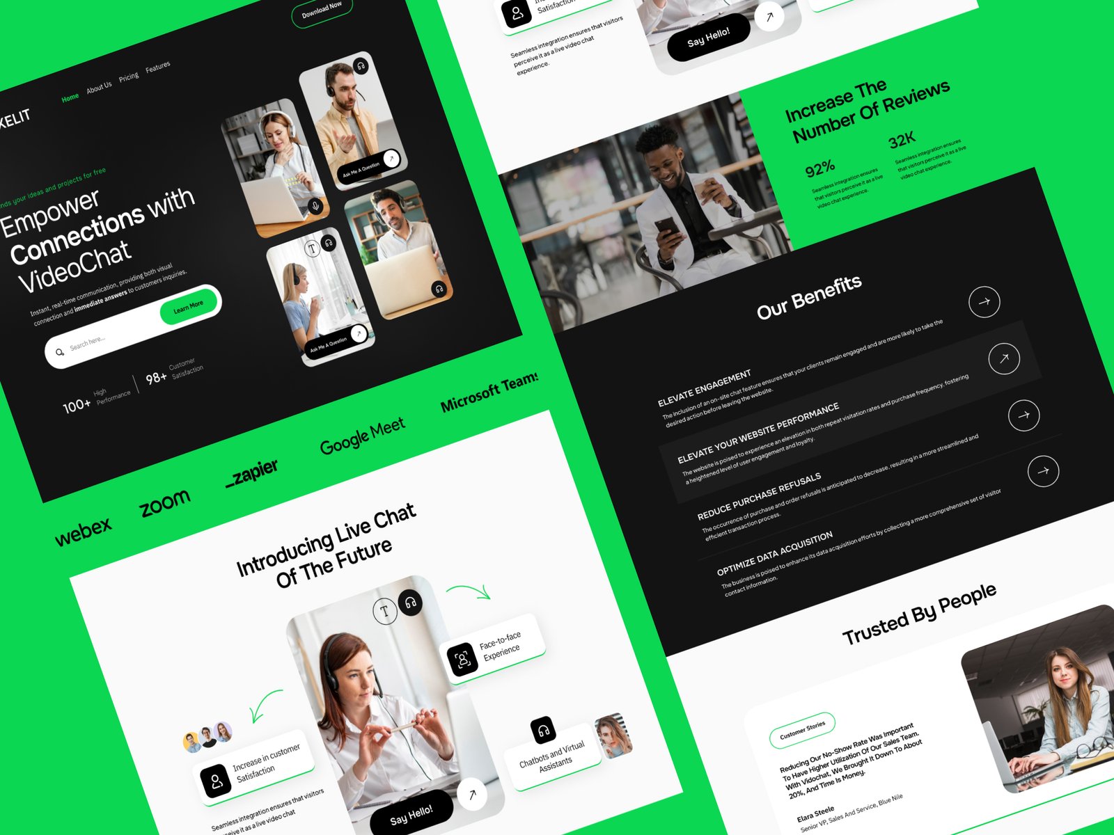 A modern and user-friendly Video Chat Landing Page UI template designed to promote video calling, virtual meetings, and real-time communication platforms. Featuring a clean layout, feature highlights, and strong call-to-action sections, this landing page is ideal for video conferencing tools, SaaS communication platforms, remote work solutions, and online meeting services. Available in Figma, XD, and Sketch formats, it allows easy customization to create engaging and high-converting video chat landing pages.