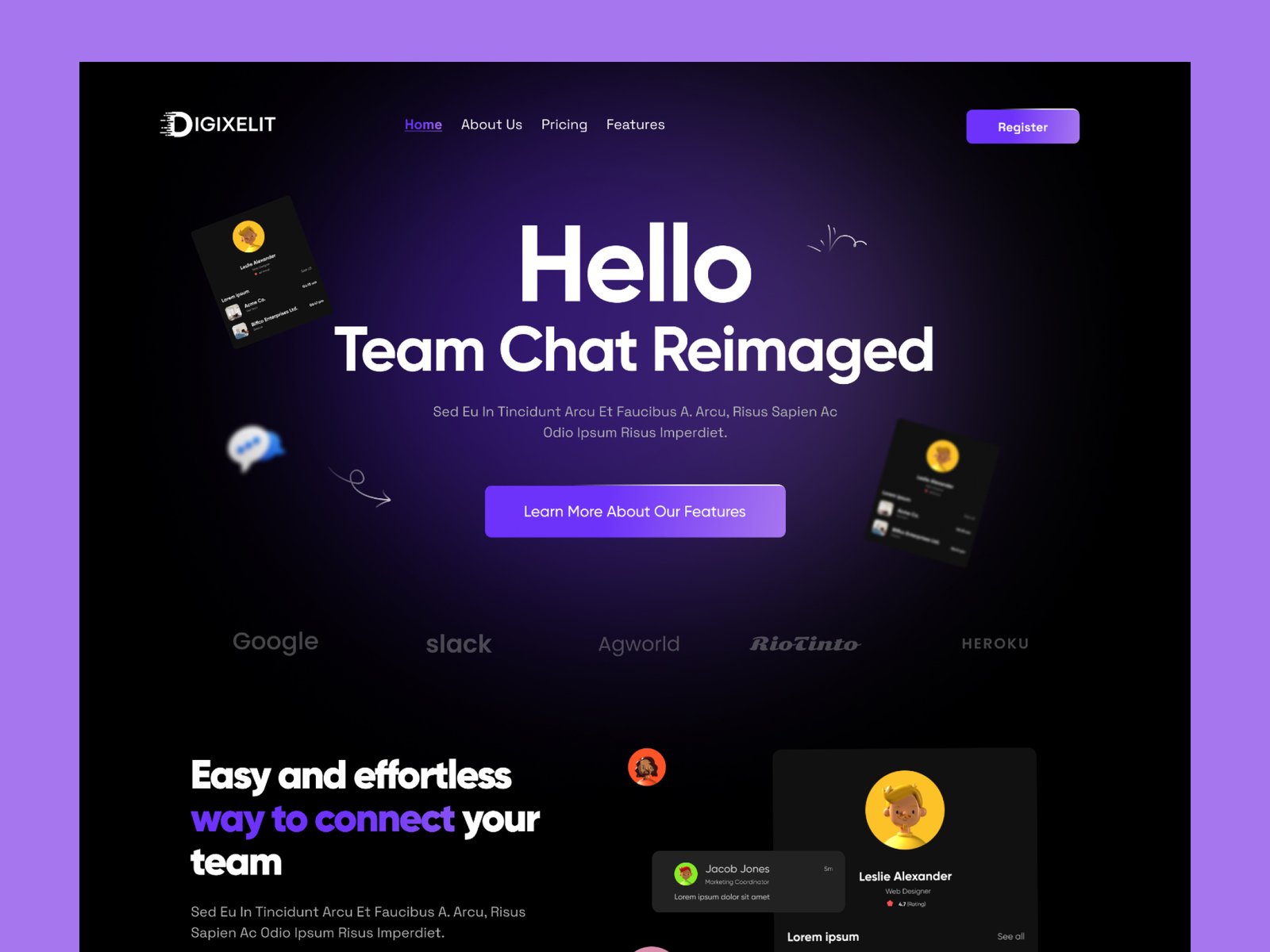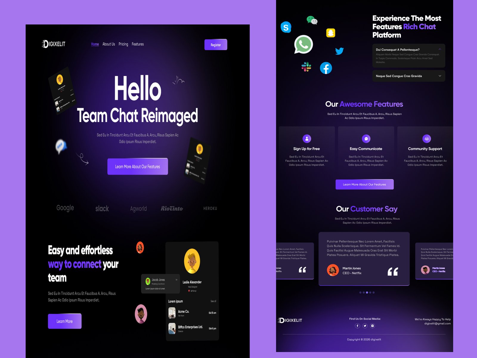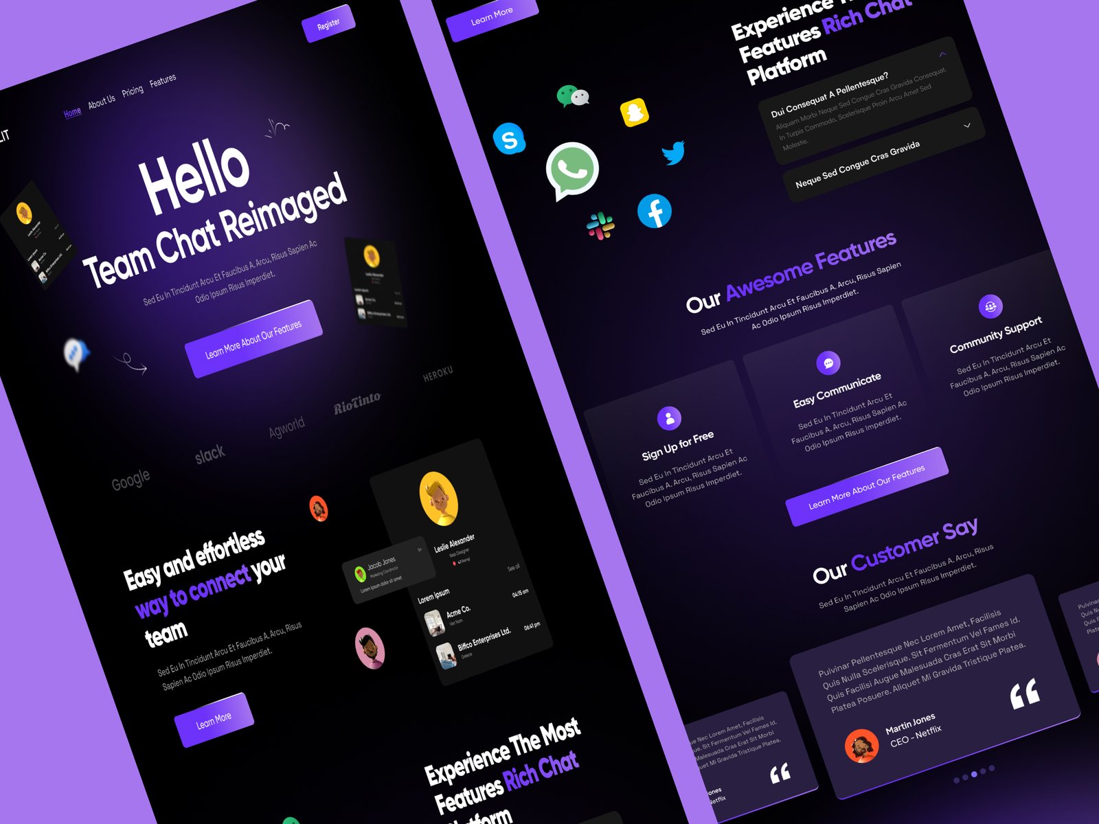 team chat landing pagechat application uicollaboration landing pagefigma landing pagesaas communication